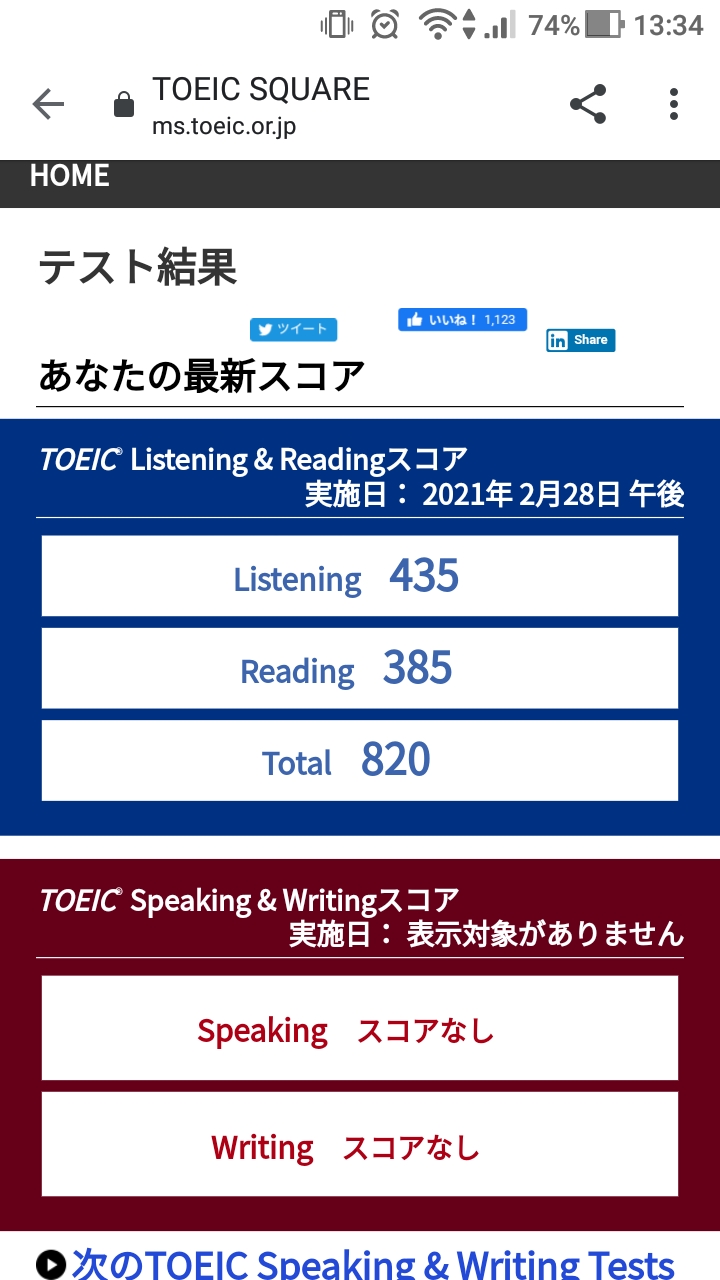 何度も言いますが、正直820点も取れるとは全く思っていませんでした。