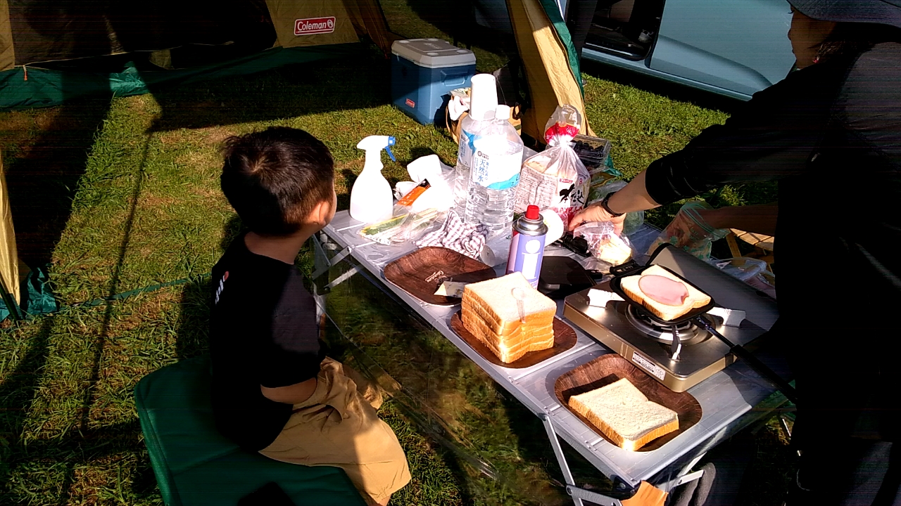 朝ごはんは、ホットサンドクッカーでホットサンドです。